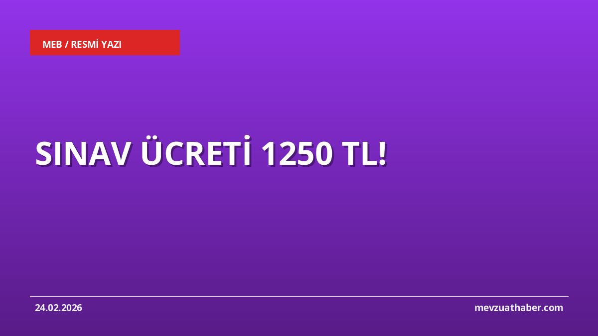 - Sınav Ücreti: KDV dahil 1.250 TL. MEB Döner Sermaye İşletmesi hesabına yatırılacak.